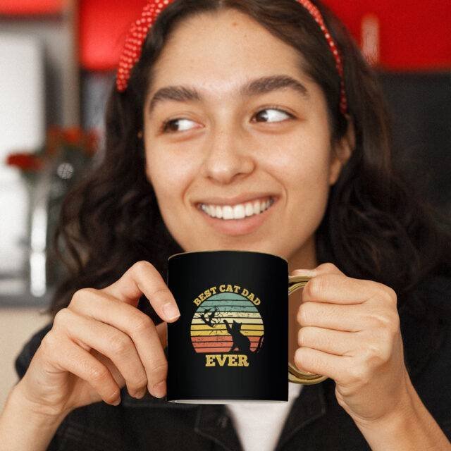 Best Cat Dad Ever Mug – Cute Gold Rim and Handle Mug – Themed Mug