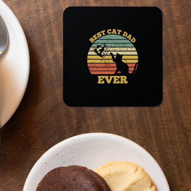 Best Cat Dad Ever Square Coasters – Cute Coaster – Themed Coasters for Drinks