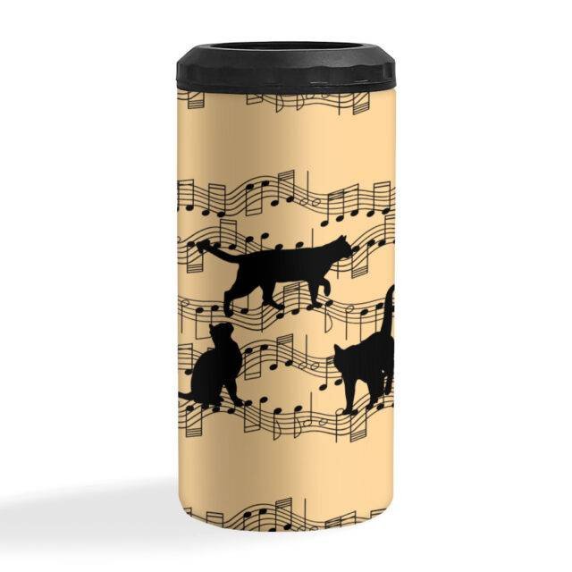 Black Cats Insulated Slim Can Cooler – Music Can Cooler – Notes Insulated Slim Can Cooler