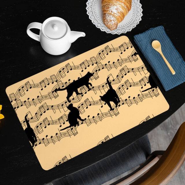 Black Cats Placemats 2 PCS – Music Placemats for Kitchen Table – Notes Table Mats