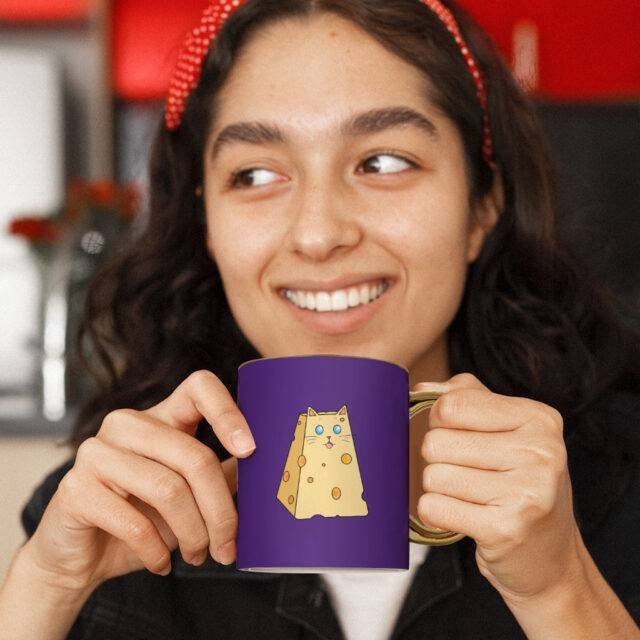 Cat Cheese Mug – Cheese Gold Rim and Handle Mug – Food Mug