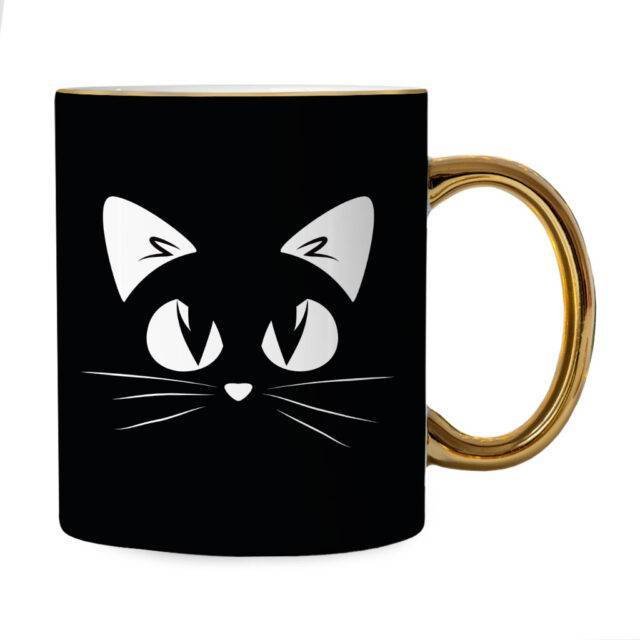 Cat Face Mug – Cat Gold Rim and Handle Mug – Cute Mug