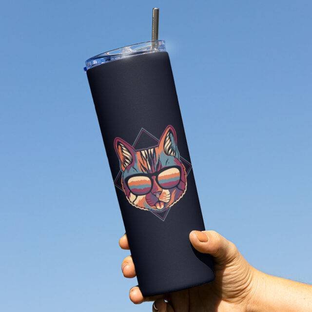 Colorful 20oz Skinny Tumbler is the perfect way to enjoy your favorite beverage on the go. Made from durable stainless steel, this double wall tumbler will keep your drink hot or cold for hours. So whether you’re headed to the gym or just running errands, Cat In Glasses 20oz Skinny Tumbler is a great choice.
