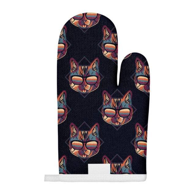 Cool Cat Oven Mitt – Colorful Oven Glove – Cat In Glasses Cooking Gloves