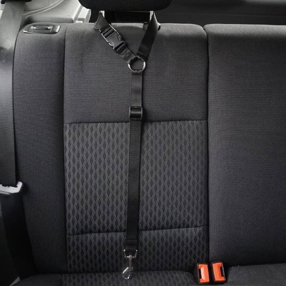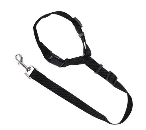 Like a leash, our seat belt has an adjustable leash with buckle that clips to secure snugly to any headrest in a car. When secure, the clip on the leash snaps to any dog collar you have on your pet.