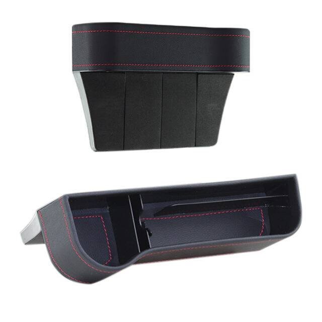 Our Multifunctional Car Seat Organizer fits into the space between your car seat and center console for an out-of-the-way storage accessory that also is conveniently within reach. Our Multifunctional Car Seat Organizer features a coin holder, curved spot to hold a tumbler or drink, and even built-in ports to facilitate flow of charger cables for devices. Plus, a luxe black, expert-crafted PU leather design (with visible red stitching detail) adds a stylish touch that blends into just about any car interior. Above all, our organizer is easy to install: just insert into the space between your seat and center console — no drills or attachment clips required. It’s a high-crafted solution to help tidy up your ride.