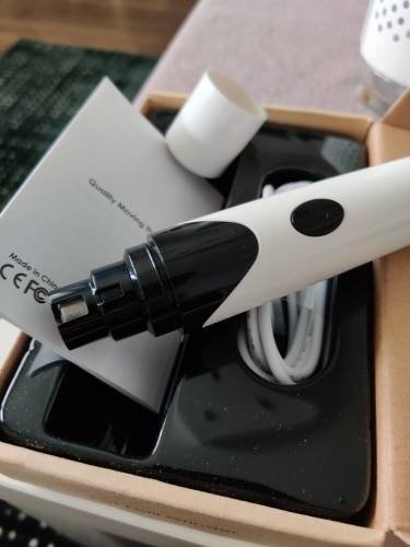 I received the nail grinder and I have used it. It really didn’t disappoint me. This nail grinder is really light, a small one. I don’t feel tired when I use it. I've used it twice. In the past, my dog just ran away as soon as when I show the nail clipper, but this time it didn't run away! There was no loud noise when I was working. I bought a nail grinder from other bands before. The noise is too loud for my dog. As soon as I turned on the switch, my dog ran away! I am very happy to have this nail grinder as a good helper for my dog grooming